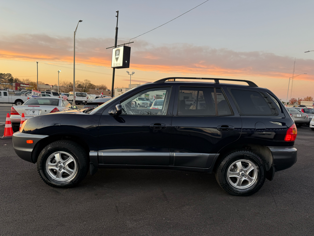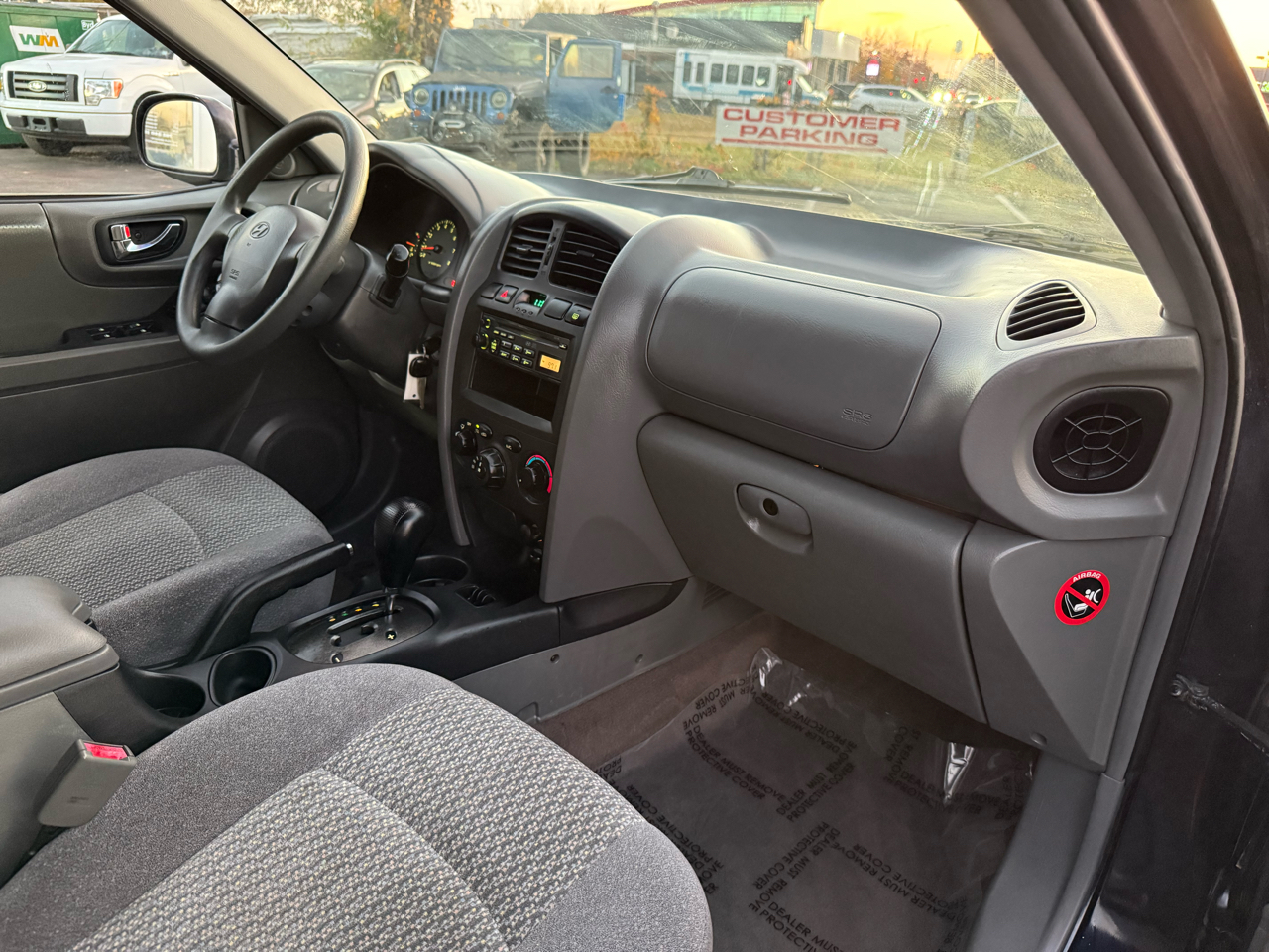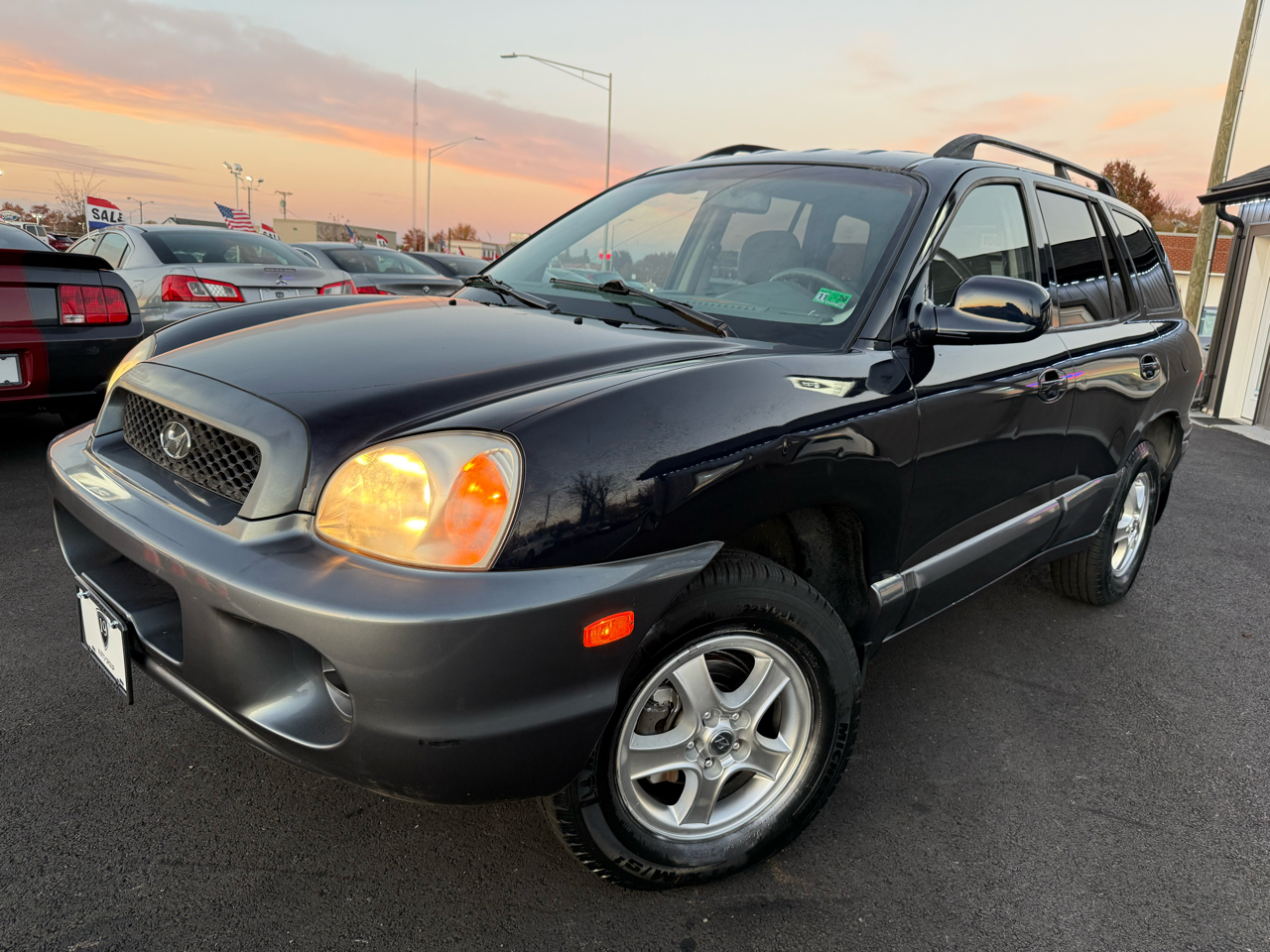 Step into this sleek Dark Blue 2004 Hyundai Santa Fe and get ready to hit the road in style! This reliable SUV is not only perfect for running errands around town, but it's also equipped with all the necessary safety features to keep your mind at ease, like Child Safety Door Locks and multiple airbags. Whether you're cruising solo or with the family, you'll stay comfortable with the icy cold Air Conditioning and the AM/FM Radio for all your favorite tunes. Plus, with Power Windows and Power Door Locks, convenience is at your fingertips.Take a peek at the Carfax report to see this vehicle's trustworthy history before you take it for a spin. With its Alloy Wheels and Front Air Dam, this Santa Fe is sure to turn heads wherever you go. Don't worry about space, because the Second Row Folding Seat and Cargo Area Tiedowns provide ample room for all your gear. So why wait? Come check out this Hyundai Santa Fe today and see where the road takes you!