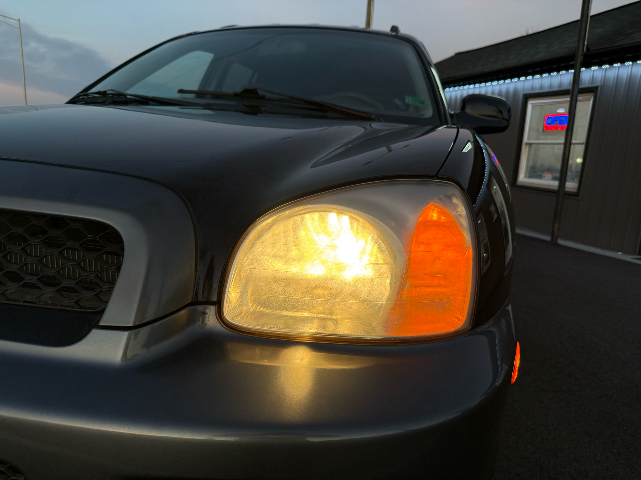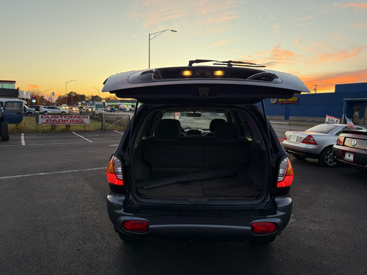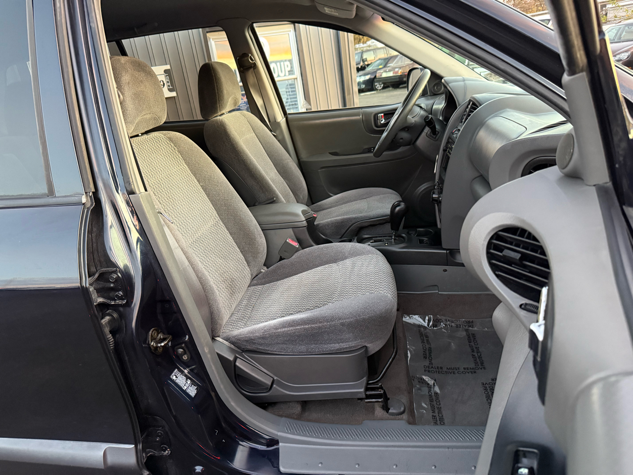 Step into this sleek Dark Blue 2004 Hyundai Santa Fe and get ready to hit the road in style! This reliable SUV is not only perfect for running errands around town, but it's also equipped with all the necessary safety features to keep your mind at ease, like Child Safety Door Locks and multiple airbags. Whether you're cruising solo or with the family, you'll stay comfortable with the icy cold Air Conditioning and the AM/FM Radio for all your favorite tunes. Plus, with Power Windows and Power Door Locks, convenience is at your fingertips.Take a peek at the Carfax report to see this vehicle's trustworthy history before you take it for a spin. With its Alloy Wheels and Front Air Dam, this Santa Fe is sure to turn heads wherever you go. Don't worry about space, because the Second Row Folding Seat and Cargo Area Tiedowns provide ample room for all your gear. So why wait? Come check out this Hyundai Santa Fe today and see where the road takes you!